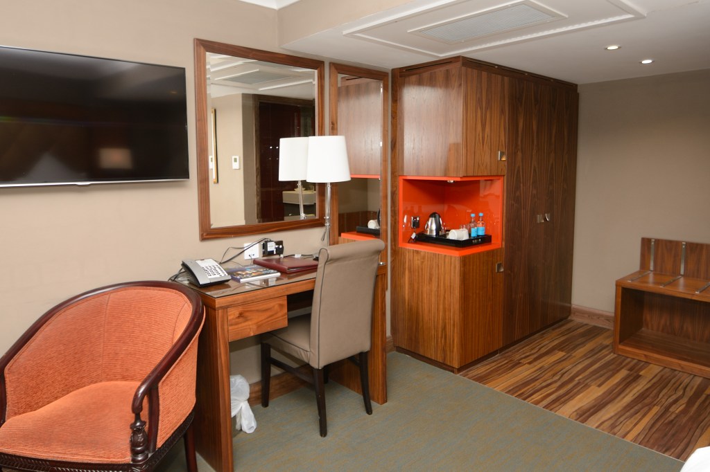 We produced the wardrobe, tea making station, desk & baggage storage units