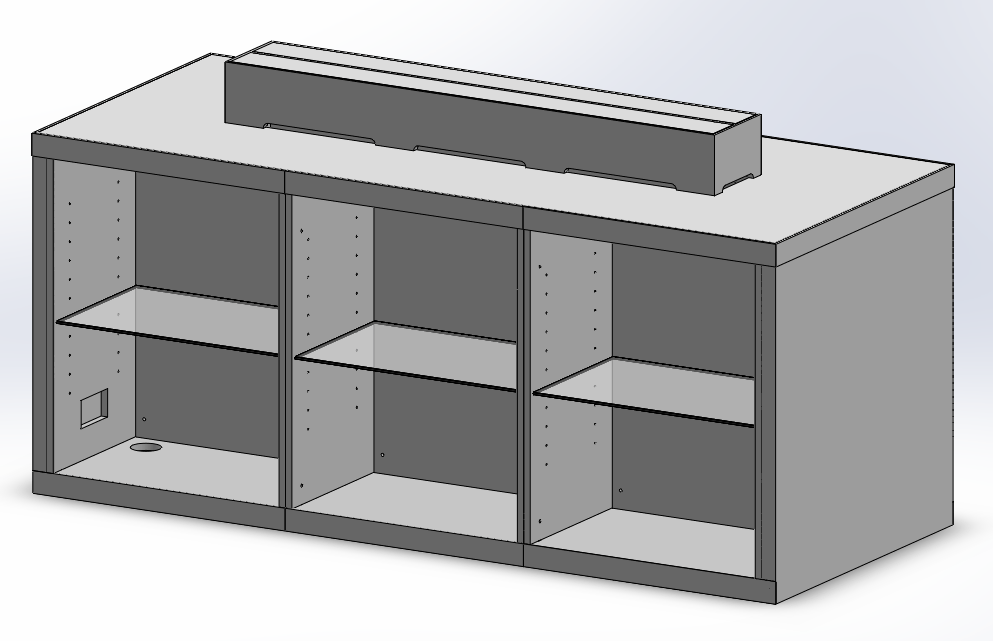 We proceeded to make the unit into 2 units, a top (with glass insert) and a top piece to use as a shelf and to hide the cabling.